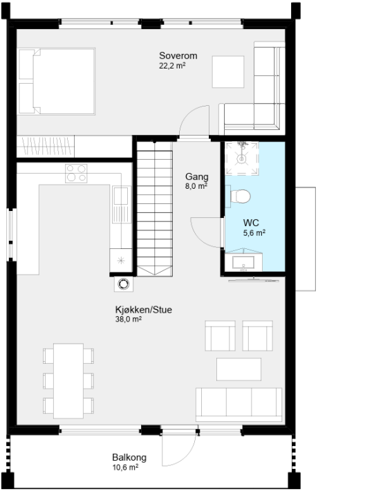 I denne moderne og familievennlige boligen finner du alt du trenger. Boligen rommer hele fire soverom, to bad, en praktisk sportsbod/vaskerom med egen utgangsdør, og en åpen og sosial stue- og kjøkkensone.